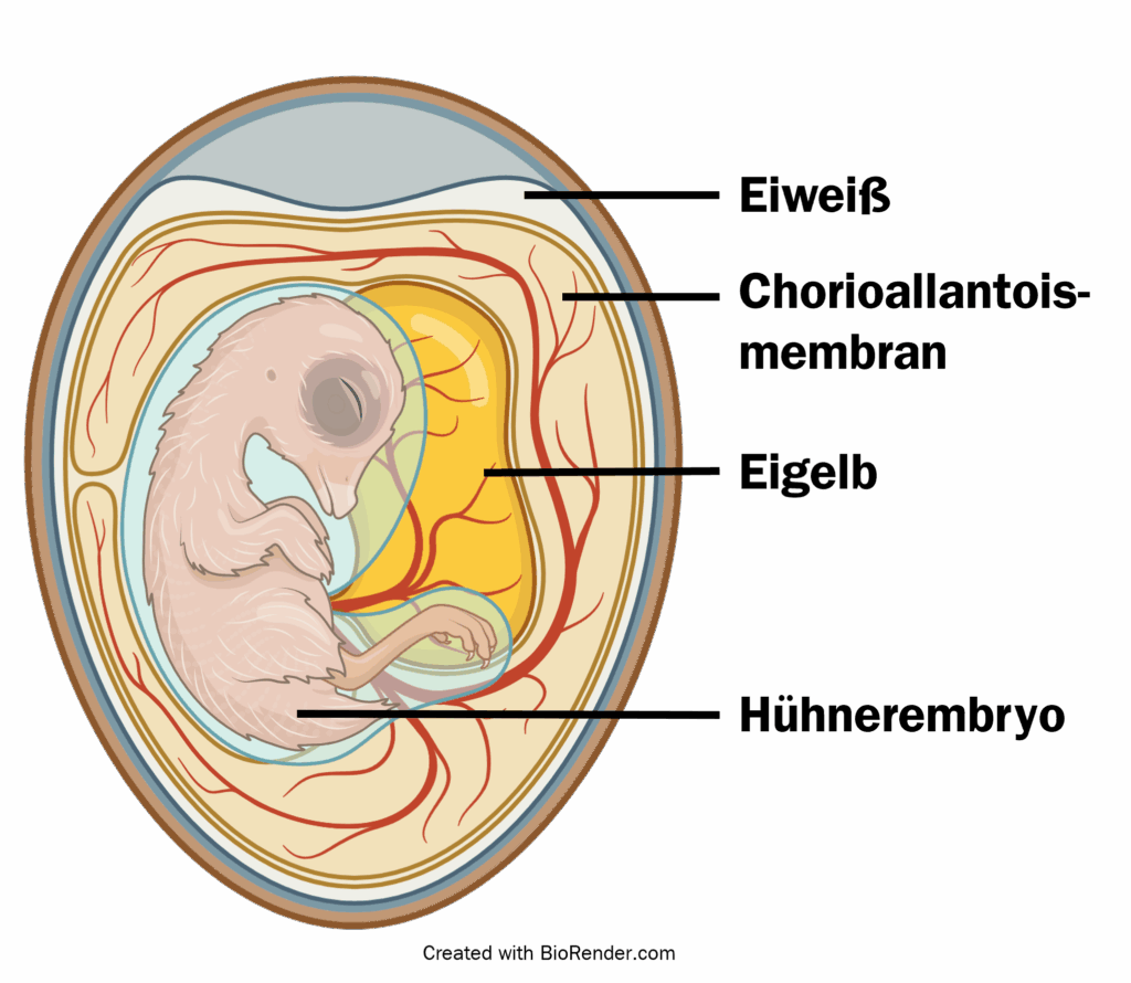 - Refine: Da das Schmerzempfinden des Embryos noch nicht eingesetzt hat, können Leiden von Versuchstieren durch das CAM-Modell verringert werden.